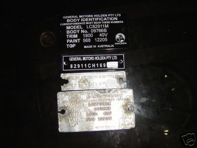 The small tag is the VIN plate. GTR and GTR - XU-1 shared the 82911 code, 8 being GMH and 2911 being Torana GTR 2 door. Next character will be C for LC, then either H1 (Acacia Ridge Brisbane assembly plant) or L1 (Elizabeth Adelaide assembly plant), finally the serial number. The following PSN are the only ones for LC GTR-XU-1